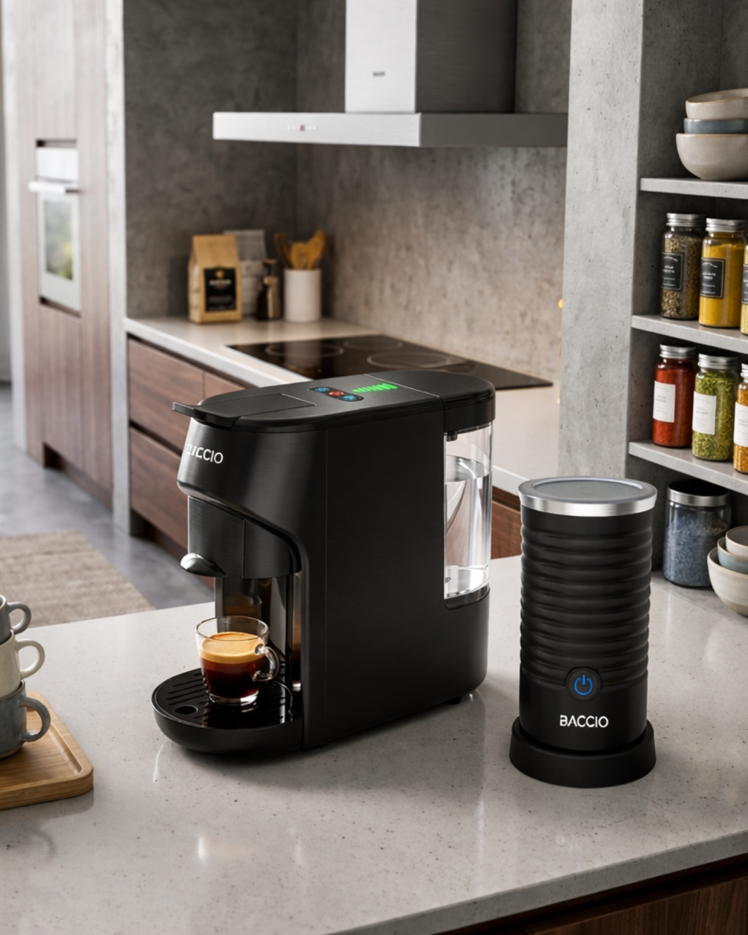 LA COMBINACION IDEAL. CAFETERA BACCIO VERSA BREW MULTIFORMATO 3 EN 1 + ESPUMANTE MULTIFUNCIÓN BACCIO QUE CALIENTA, CALIENTA Y ESPUMA Y ESPUMA LECHE FRÍA CON SOLO UN BOTÓN